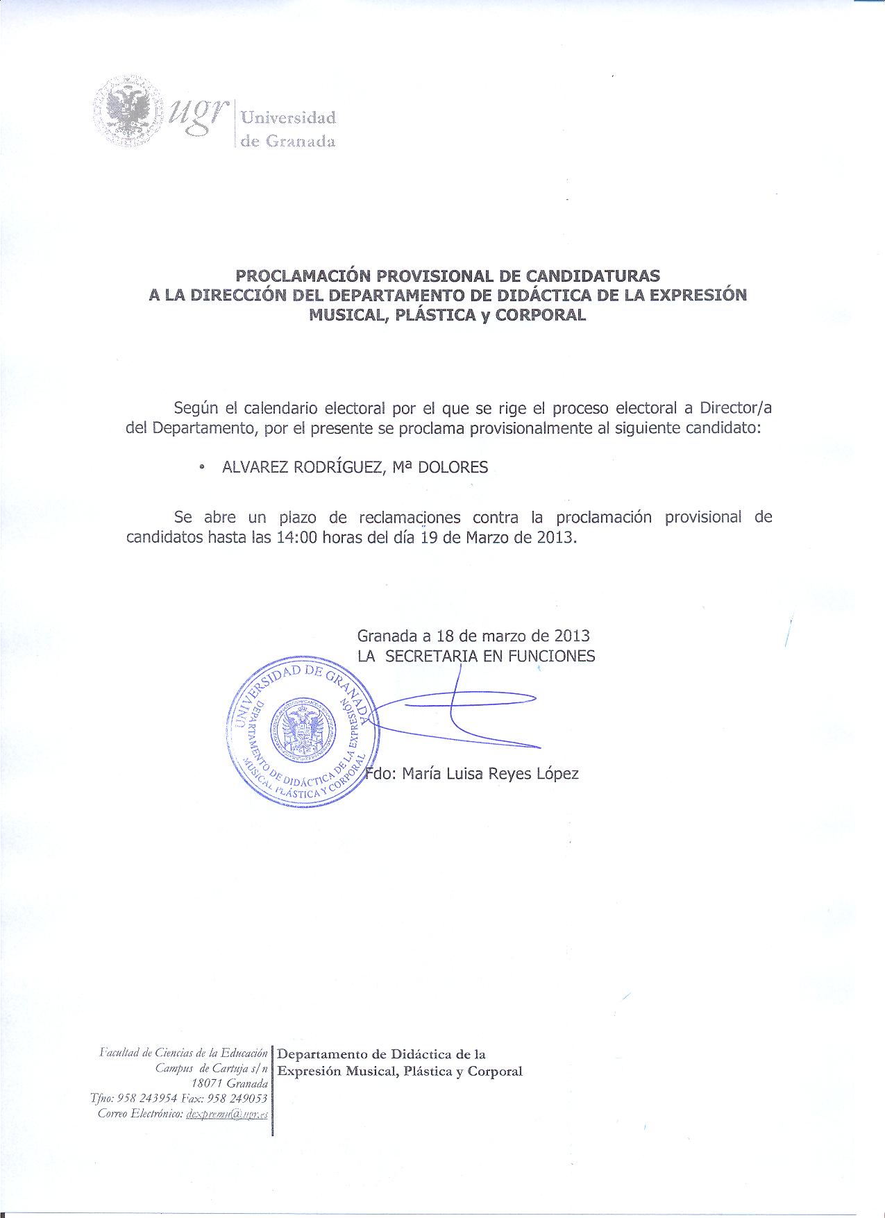 Departamento de Didáctica de la Expresión Musical, Plástica y Corporal