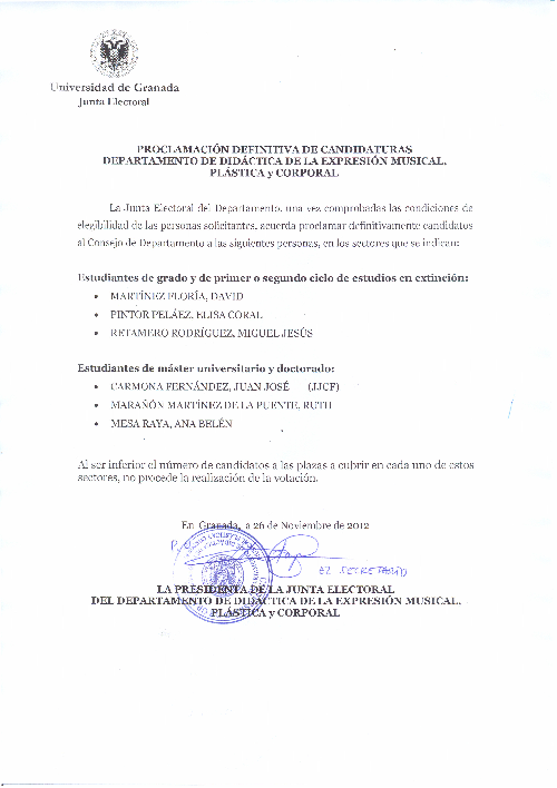 PROCLAMACION DEFINITIVA CANDIDATOS