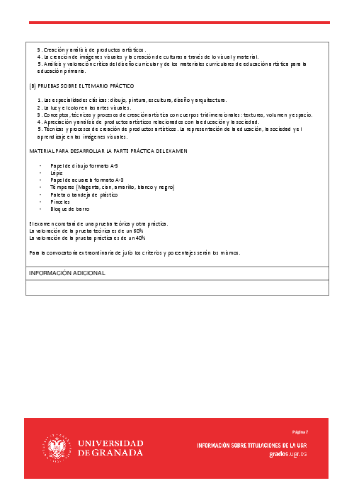 Granada Primaria Didáctica Artes Visuales Optativa 4º 2017-18
